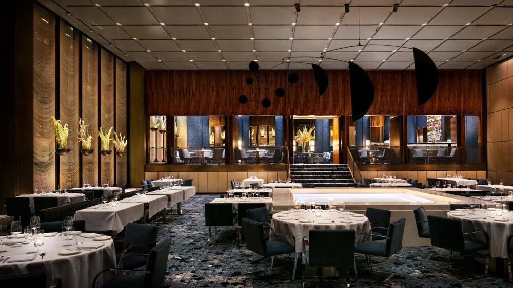 2016年に閉鎖してしまいましたが、The Four Seasonsというラグジュアリーを極めた高級レストランがシーグラムビルに入居していました。The Four Seasonsの内装はフィリップ・ジョンソン自らが手掛けたと言われています。高い天井の空間を覆うフレンチ・ウォールナットのパネル、天井から吊るされたリチャード・リッポルドのブロンズ・アート、ピカソのタピストリー、ミーズを含めたデザイナーの手によるモダニズム家具の数々、絢爛豪華な現代アートのデモンストレーションでした。結局、どんなにストイックに近代建築の理念を語る建築家も、実際の物質に手を入れる瞬間に透明性、抽象、合理性、とは対極にある濃厚さ、具象、美意識と様式美、に駆られてデザインを洗練させていく、ということなのかもしれません。『建築』の本質とはそのようなものなのではないか。現在のシステム志向、仕組み思考とは真逆のはたらき。